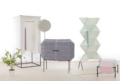 De serie bestaat uit vier verschillende units waarbij textiel om een metalen frame is getrokken. De kasten hebben dus ultradunne wanden. We love London!